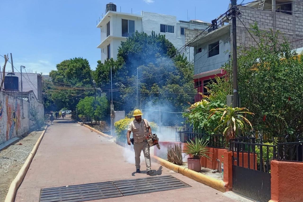 Por instrucciones de la gobernadora Evelyn Salgado Pineda y de la titular de la Secretaría de Salud, Aidé Ibarez Castro, el personal de la Jurisdicción Sanitaria 03 Centro del Distrito 01, realizaron una jornada de termonebulización en las manzanas que se encuentran alrededor del centro de Chilpancingo; técnica eficaz mediante la aplicación de insecticida para combatir el mosco Aedes Aegypti, vector de estas enfermedades.