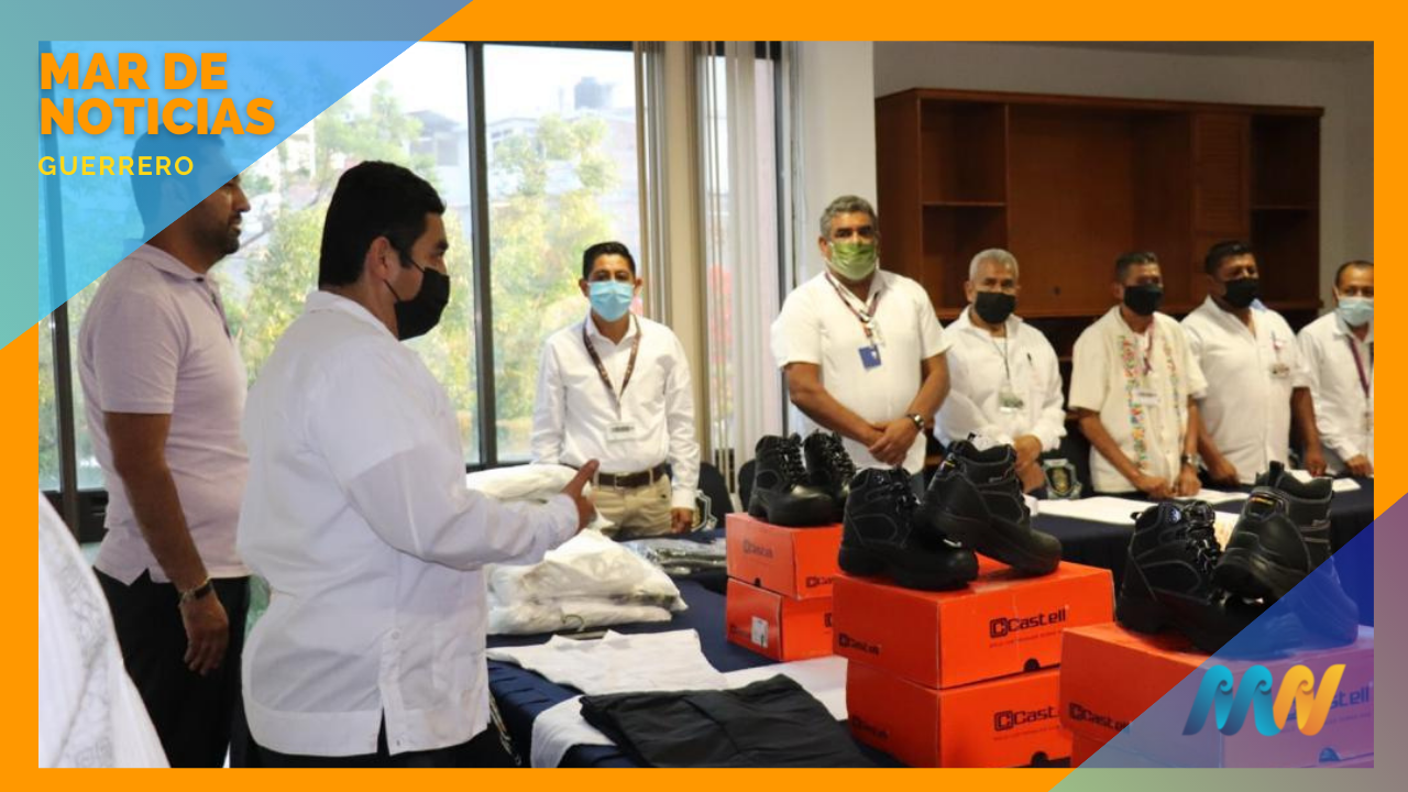 Chilpancingo, Guerrero, 05 de mayo de 2022. – Como parte de las acciones para la dignificación policial, el secretario de Seguridad Pública de Guerrero, Evelio Méndez Gómez entregó este jueves, uniformes al personal de Servicios Gubernamentales, quienes brindan resguardo en las instalaciones del Recinto de las Oficinas del Poder Ejecutivo y Casa Guerrero.