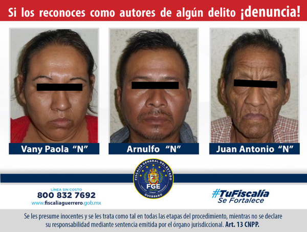 La Fiscalía General del Estado obtuvo la sentencia de 53 años de prisión en contra de Juan Antonio “N”, Vany Paola “N” y Arnulfo “N”, como responsables de secuestro en la ciudad de Taxco de Alarcón.