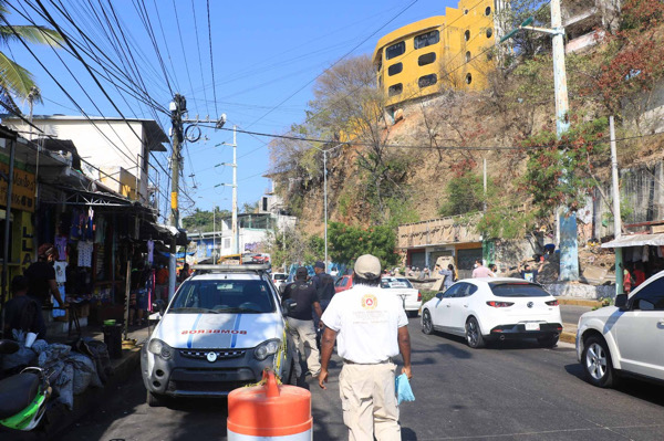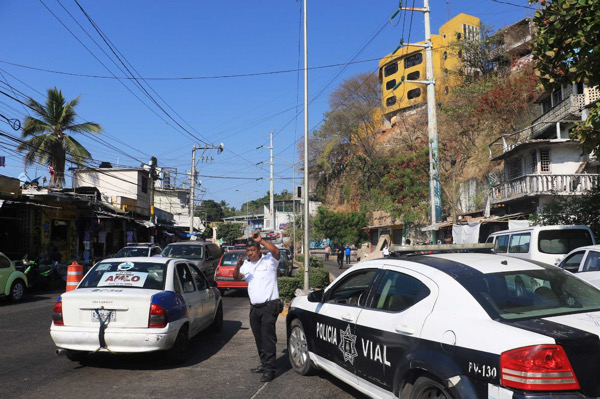 Acapulco, Gro., 16 de marzo de 2022.- Debido a los trabajos de demolición que realizarán a una vivienda afectada por el sismo de 7.1 grados, en escala de Richter, ocurrido en septiembre pasado, personal de Protección Civil y de Seguridad Pública (SSP), cerraron esta mañana un carril de la avenida Ruiz Cortines, a la altura de La Laja.