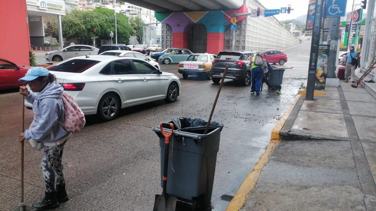 El Gobierno Municipal de Acapulco atiende de manera inmediata los reportes ciudadanos y exhorta a la población a mantener las calles libres de basura, evitando el taponamiento de rejillas y reduciendo riesgos de inundación.