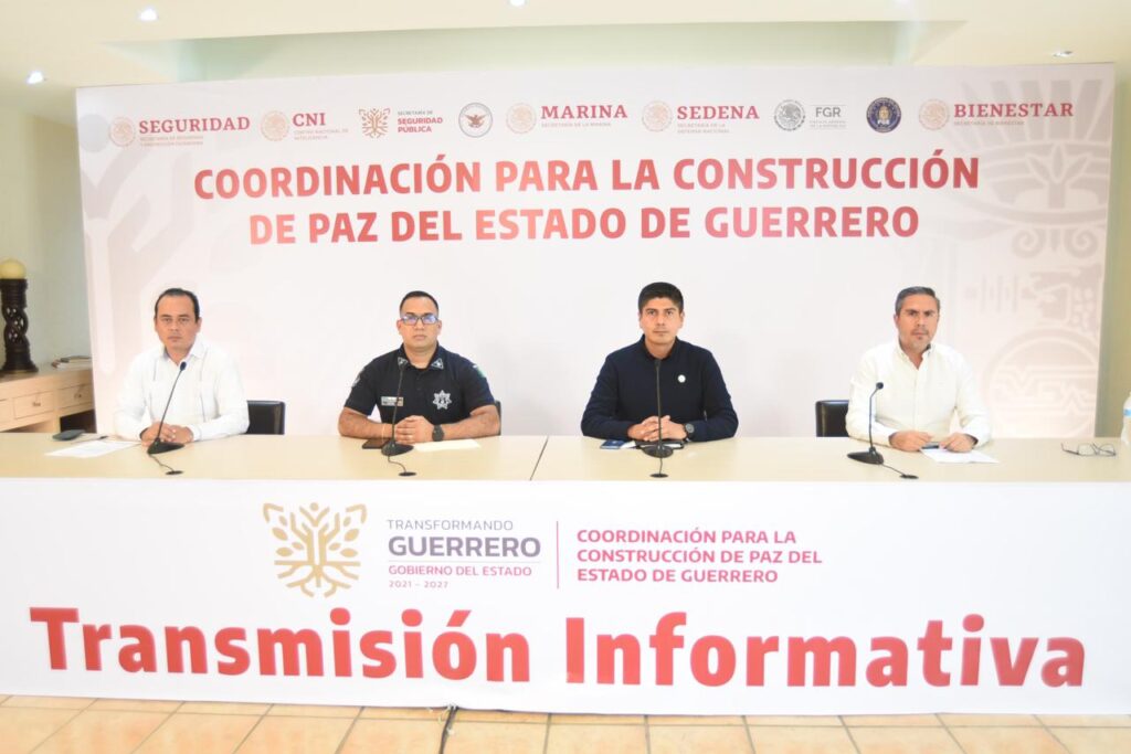 Chilpancingo, Gro., 14 de noviembre de 2022.- Personas detenidas, armas y vehículos decomisados, así como la localización de mujeres y niños reportados como desaparecidos, son los resultados que arrojaron los trabajos permanentes de las instituciones responsables de la seguridad y la procuración de justicia, fue lo informado en la sesión semanal de los integrantes de la Mesa para la Construcción de la paz, además del seguimiento a la denuncia de personas armadas en la cabecera de Apaxtla de Castrejón.