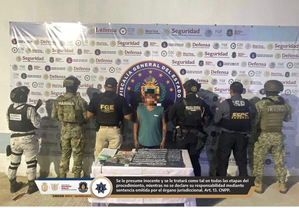 La acción derivó de un reporte recibido a través del sistema de emergencias C5 Acapulco, donde se alertaba sobre una persona presuntamente relacionada con la venta de sustancias ilícitas. En atención al llamado, el personal operativo, en coordinación con el Ejército Mexicano, la Marina, Guardia Nacional, la Secretaría de Seguridad y Protección Ciudadana y la Fiscalía General del Estado, se trasladaron al lugar señalado.