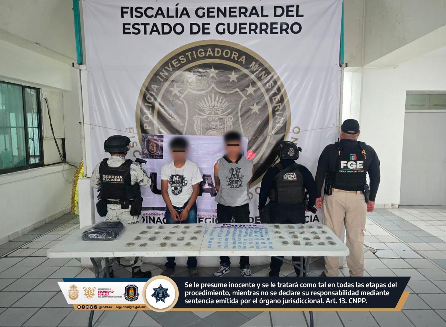 Detiene Policía Estatal, FGE y GN a dos personas con presunta droga en Acapulco