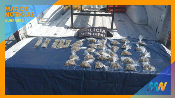 Al proceder a la revisión se le encontraron 35 bolsitas de plástico con hierba verde con las características propias de la mariguana, por lo que de inmediato, se le dio lectura a la cartilla que asiste a los detenidos y procedieron a su traslado para ser puesto a disposición de la autoridad competente para los trámites legales correspondientes.