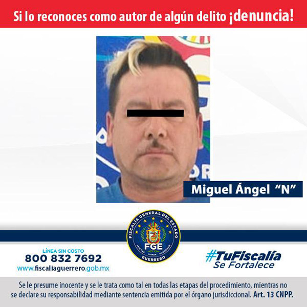 La Policía Investigadora Ministerial adscrita a la Agencia de Delitos Sexuales y Violencia Familiar de Huitzuco de los Figueroa, cumplimentó la orden de aprehensión en contra de Miguel Ángel “N”, detenido como probable responsable del delito de Violación cometido en agravio de menor de edad.