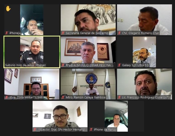 Las autoridades evaluaron la estrategia de seguridad, así como las operaciones conjuntas desplegadas en las zonas prioritarias de la entidad en coordinación con la Secretaría de la Defensa Nacional, Marina, Guardia Nacional, Secretaría de Seguridad Pública Estatal, así como las instituciones de inteligencia y de procuración de justicia del Estado y de la República.