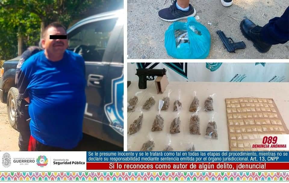 Detienen a un hombre con arma y droga en Zihuatanejo