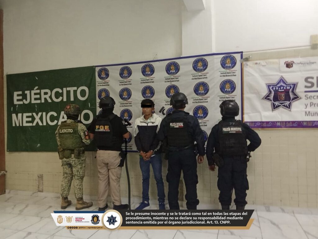 Chilpancingo, Guerrero, a 27 de octubre de 2025. Derivado del reforzamiento de la seguridad en las calles, colonias y lugares de mayor afluencia de Chilpancingo, fuerzas de seguridad detuvieron a un masculino en posesión de un arma de fuego, así como de una cuatrimoto que había sido robada con violencia, en la colonia Omiltemi.