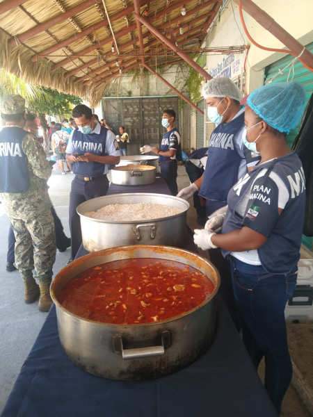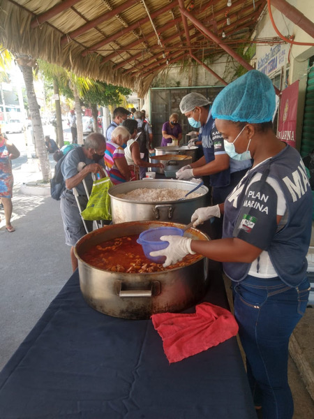 en el marco del Plan Marina por la contingencia sanitaria de COVID-19; elaboró y distribuyó a la población vulnerable, un total de 304 mil 436 raciones calientes.