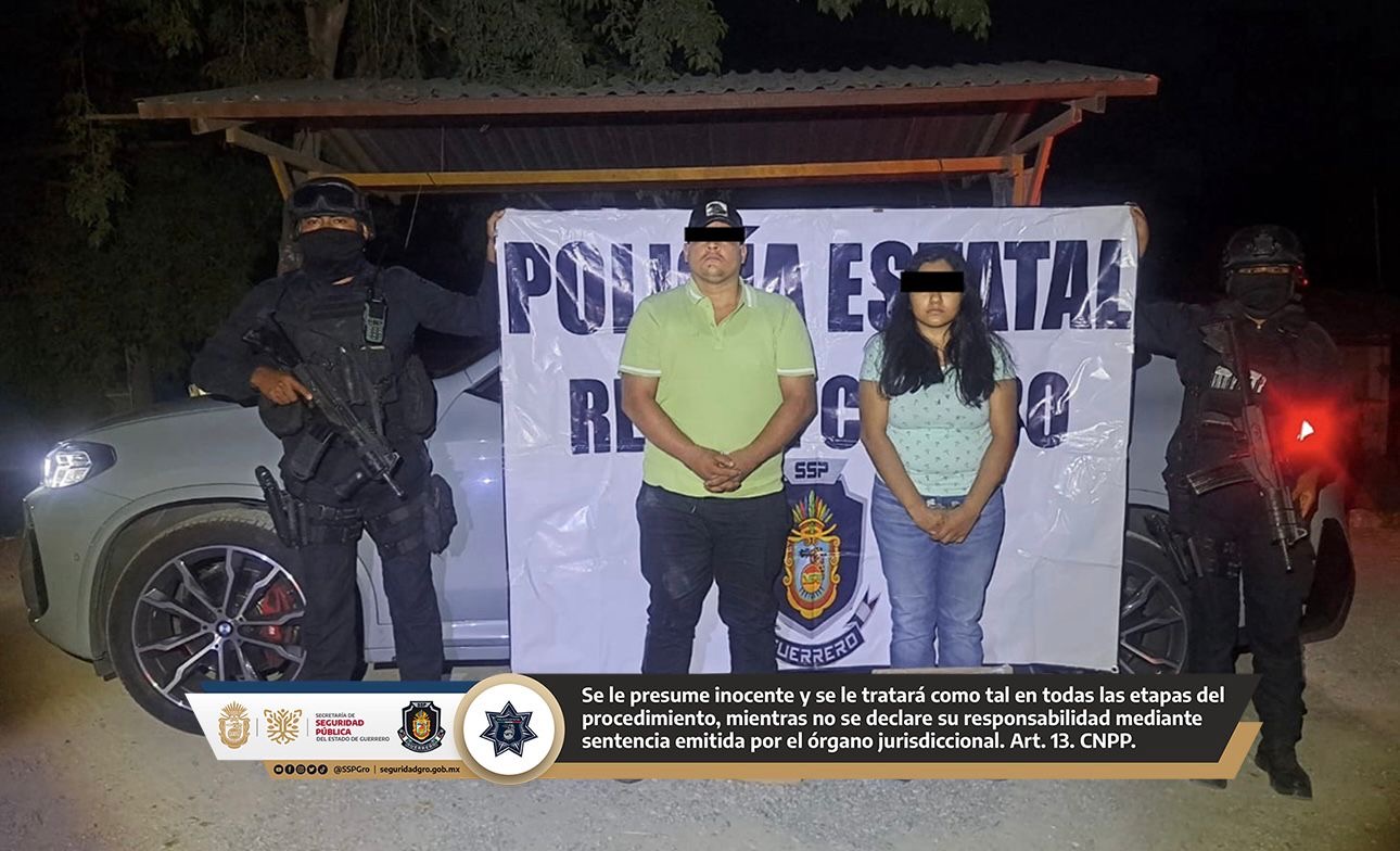 En el sitio, personal de la Policía Estatal de Guerrero interceptó la unidad y detuvo a un hombre y a una mujer, asegurando entre sus pertenencias: