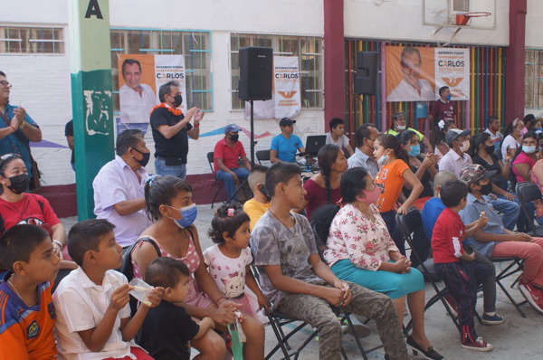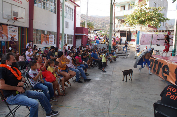 Por segundo día consecutivo, Carlos Reyes Paris, candidato a diputado local por el 04 Distrito por Movimiento Ciudadano, celebró el Día del Niño y llevó otra función de lucha libre, ahora en la colonia Santa Cruz en un ambiente de fiesta.