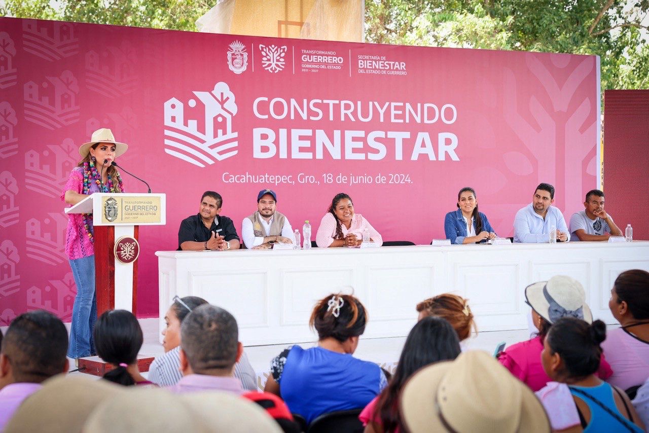 Bienes Comunales de Cacahuatepec, Mpio. de Acapulco, Gro., 18 de junio de 2024.- “El desarrollo sólo es posible si va de la mano de la justicia”, señaló la gobernadora Evelyn Salgado Pineda durante la entrega de viviendas del programa Construyendo Bienestar, mediante el que se apoya a las familias de zonas vulnerables, con acciones de infraestructura para la construcción de sus hogares, con pisos y techos firmes, así como diversas obras, en apoyo de quienes más lo requieren.