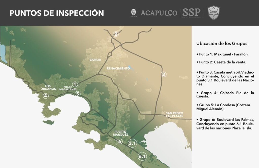 El primer punto de inspección es a la altura del Maxitunel-Farallón, uno más en la caseta de La Venta; otro en caseta de Metlapil, Viaducto Diamante, concluyendo en el boulevard de Las Naciones.