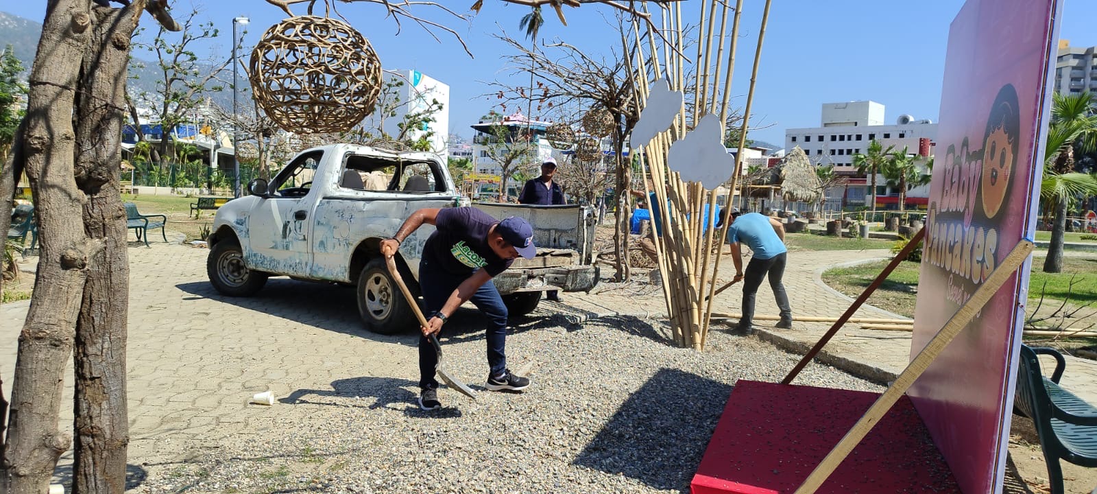 El funcionario estatal explicó que nuevamente se están reutilizando las ramas y árboles secos que destruyó Otis, para darle una nueva imagen a la Villa que esta en proceso de decoración.