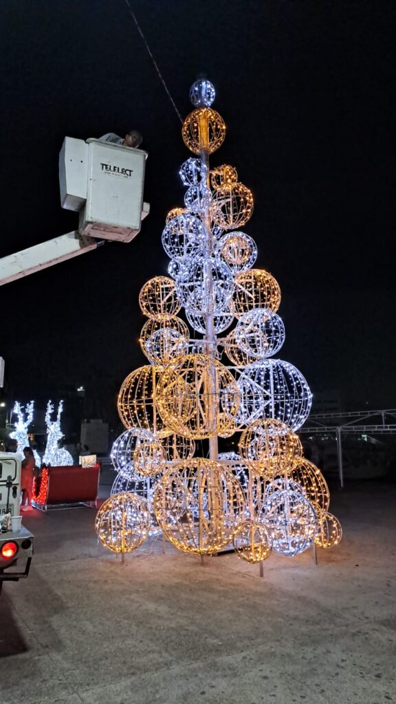 El titular explicó que en Vía Rápida se colocó un pino de 15 metros de altura con mil 200 luces, así como un cielo de luces que consiste en mil 400 LED, y un set de regalos compuesto por 7 piezas con mil 100 luces de colores blanco y rojo, así como un juego de nacimiento de 6 piezas.