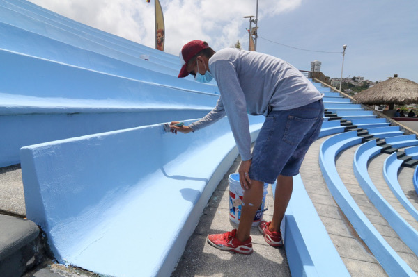 Acapulco, Gro., 08 de septiembre de 2020.-La coordinación de los Servicios Púbicos Municipales realiza trabajos de pintura y remozamiento en Sinfonía del Mar, con la finalidad de embellecer este espacio para disfrute de turistas y residentes.