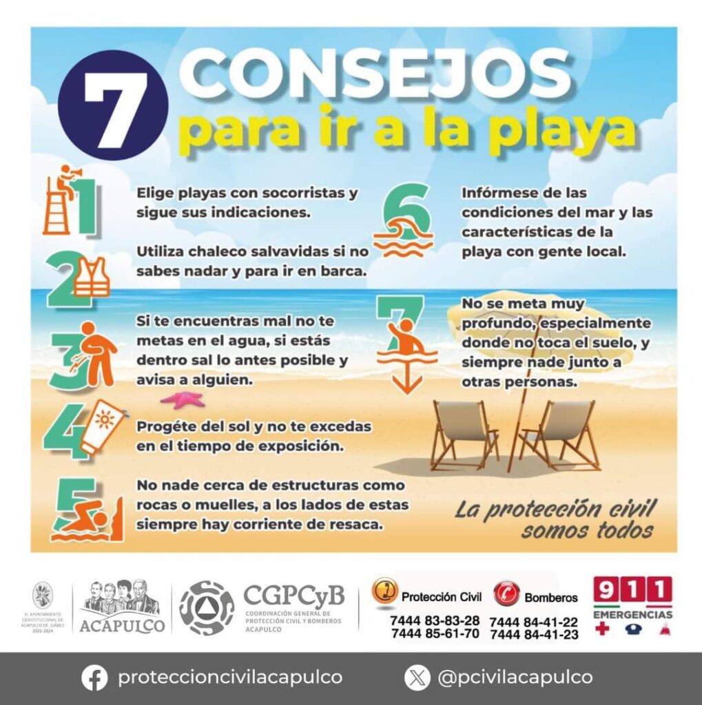 De acuerdo con la dependencia municipal, la presencia de mar de fondo se mantendrá hasta el 24 de junio, por ello se pide a la población atender las siguientes recomendaciones: