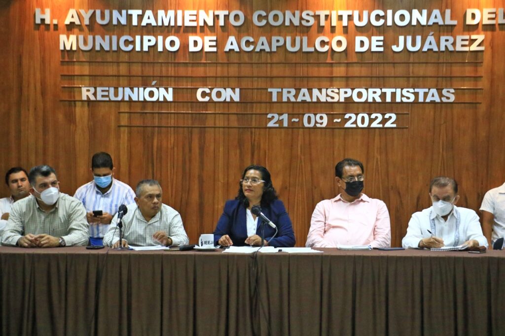 Acapulco, Gro., 21 de septiembre de 2022.– Para dar respuesta oportuna a los transportistas que circulan por las calles y avenidas de la ciudad, la presidenta municipal, Abelina López Rodríguez, se reunió con representantes del sector para tratar temas relacionados a movilidad, licencias de circulación, infracciones y alumbrado público.