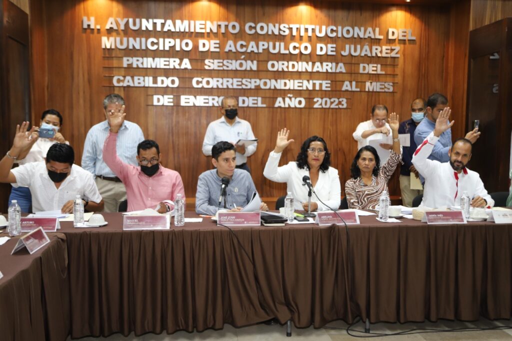 Acapulco, Gro., 26 de enero de 2023.– Durante la primera sesión ordinaria de Cabildo, correspondiente al mes de enero del año en curso, los regidores analizaron, discutieron y aprobaron proyectos a favor de la población acapulqueña.