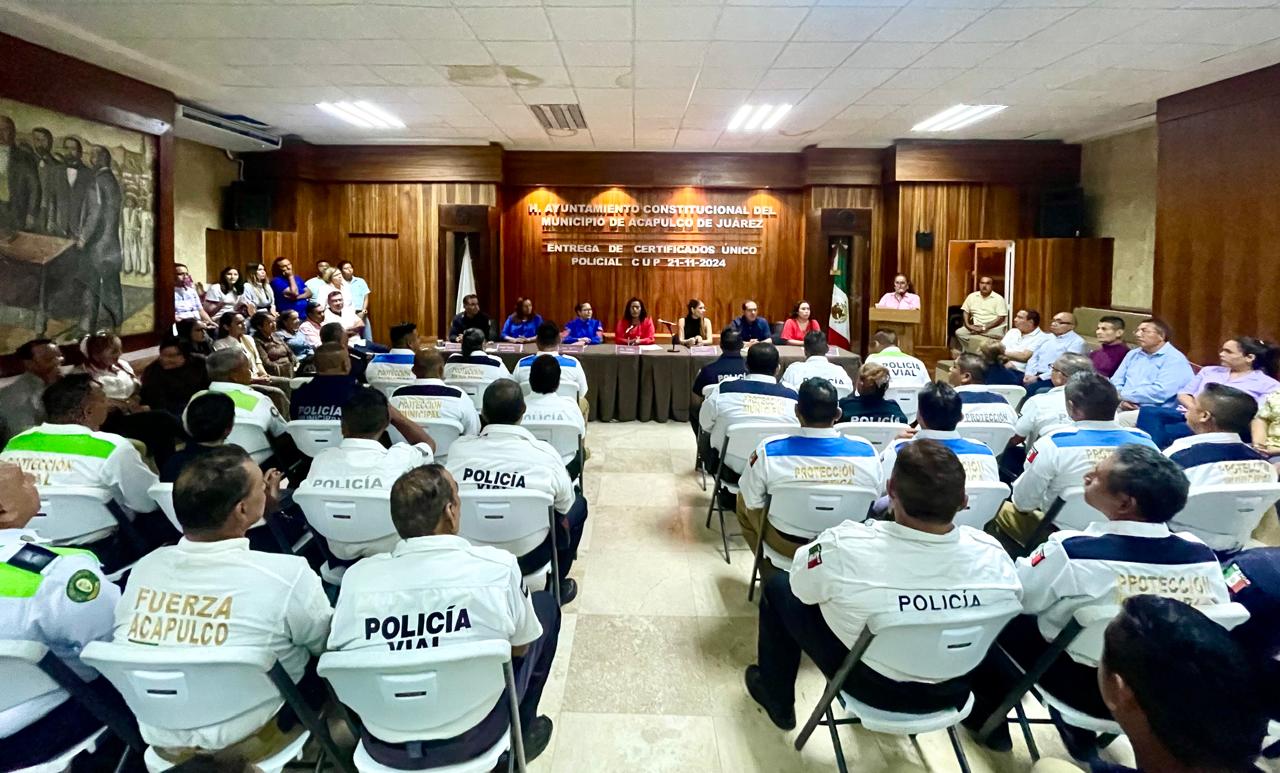 Acapulco, Gro., 21 de noviembre de 2024.- Con el propósito de eficientar, mejorar el servicio y brindar confianza entre acapulqueños y visitantes, el Gobierno Municipal que preside Abelina López Rodríguez entregó el Certificado Único Policial a 35 agentes de la Secretaría de Seguridad Pública (SSP).