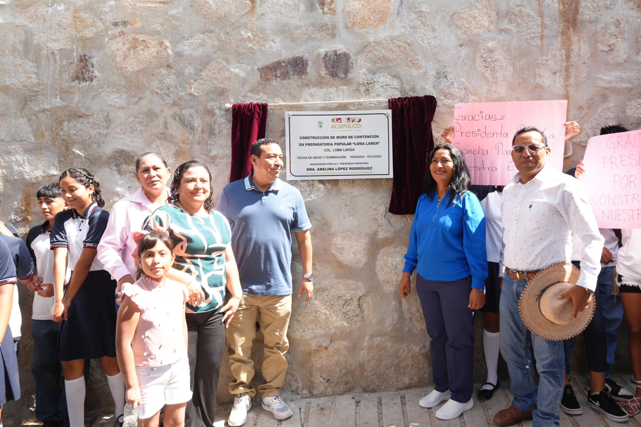 Acapulco, Gro., 16 de julio de 2025.- Con una inversión superior a los 5 millones de pesos, la presidenta municipal de Acapulco, Abelina López Rodríguez, entregó la primera etapa de la barda de contención en la Preparatoria Popular Loma Larga, una obra prioritaria que mejora las condiciones de seguridad y acceso a la educación para más de 150 estudiantes.