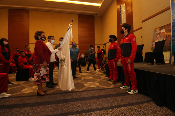 Acapulco, Gro., 14 de junio de 2021.- La presidenta municipal Adela Román Ocampo abanderó a la delegación de más de 400 deportistas guerrerenses que competirán en los juegos nacionales CONADE 2021 y, en compañía del secretario de Desarrollo Social en el Estado, Arturo Salgado Urióstegui, entregó el estandarte que habrán de representar.