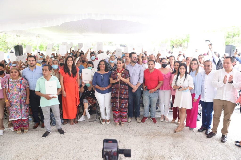 Salgado Pineda dijo que este acto no se trata de un privilegio ni una dádiva, sino del pleno ejercicio de su derecho a la vivienda. “Eso es un derecho, por eso me da mucho gusto que estén todas las compañeras y compañeros aquí recibiendo esto que durante tantos años anhelaron”, dijo.