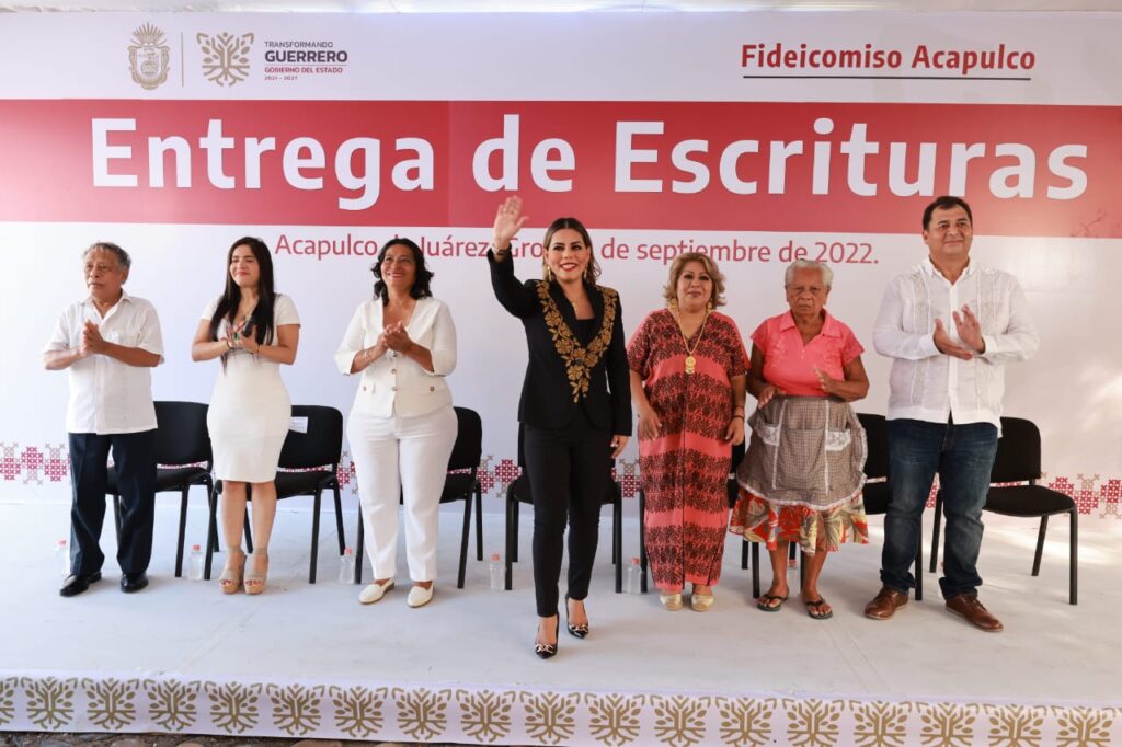 Acapulco, Gro., 30 de septiembre de 2022.- Para dar certeza jurídica y certidumbre al patrimonio de 371 familias acapulqueñas, la gobernadora Evelyn Salgado Pineda entregó igual número de escrituras a colonos de más de 73 asentamientos poblacionales ubicados en distintas partes del puerto. Con esta acción se atiende una demanda histórica, mediante la cual los beneficiados contarán con el documento que acredita legalmente la posesión de sus bienes inmuebles.