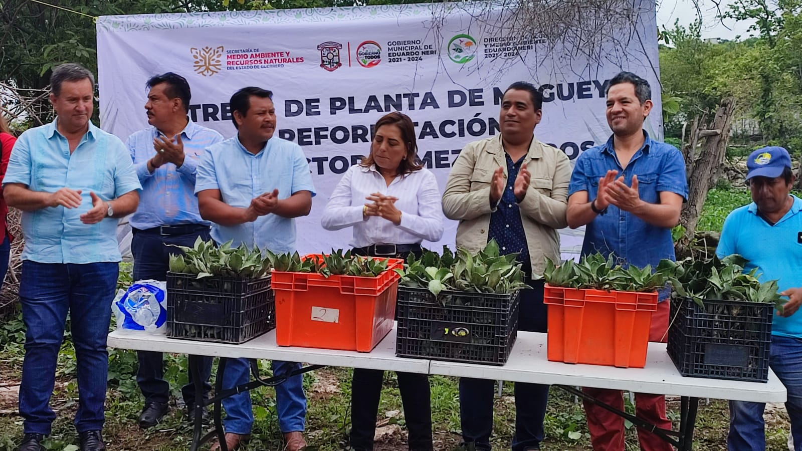 Axaxacualco, Mpio. De Eduardo Neri, 27 de julio de 2023.- Un total de dos mil quinientas plantas de maguey fueron entregadas a productores de mezcal de las comunidades de Tlanipatla y Axaxacualco para fomentar la producción sustentable y amigable con el medio ambiente, en una mezcla de recursos entre el gobierno del estado y municipio.