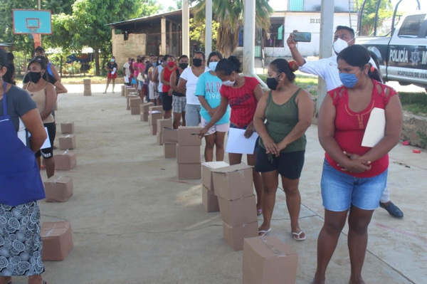 Acapulco, Gro., 22 de septiembre de 2020.-Madres de familia de Salsipuedes, Parotillas, Los Hilamos y Las Parotas, recibieron cajas de Desayunos Escolares Calientes para poder prepararlos en sus hogares y alimentar a sus hijos, debido al cierre temporal de las escuelas por el paso de la pandemia.