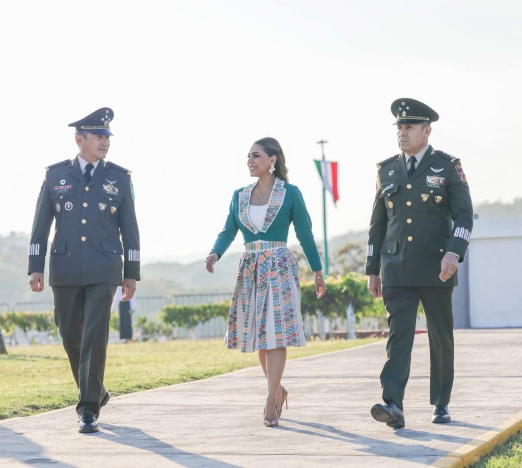 En un acto solemne de respeto y patriotismo, la gobernadora, junto con los titulares de los poderes Judicial y Legislativo, así como mandos militares y navales, montó una guardia de honor ante la Bandera de las Tres Garantías, símbolo de la memoria histórica de la nación.