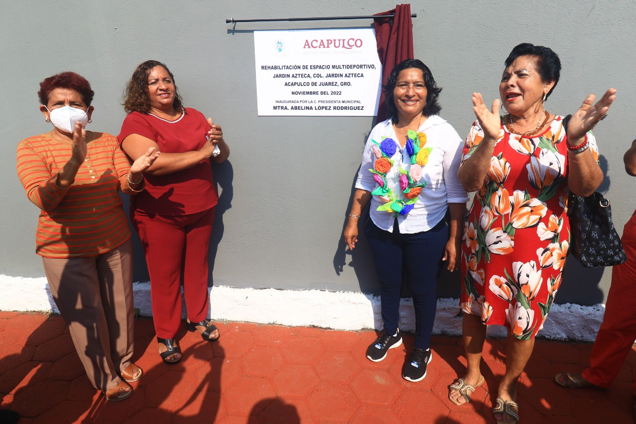 Acapulco, Gro., 05 de noviembre de 2022.– Al develar la placa por la Rehabilitación del Multideportivo de colonia Jardín Azteca, la presidenta municipal, Abelina López Rodríguez, dijo a los vecinos que estará al pendiente de ese núcleo poblacional para resolver los diversos problemas que tienen.
