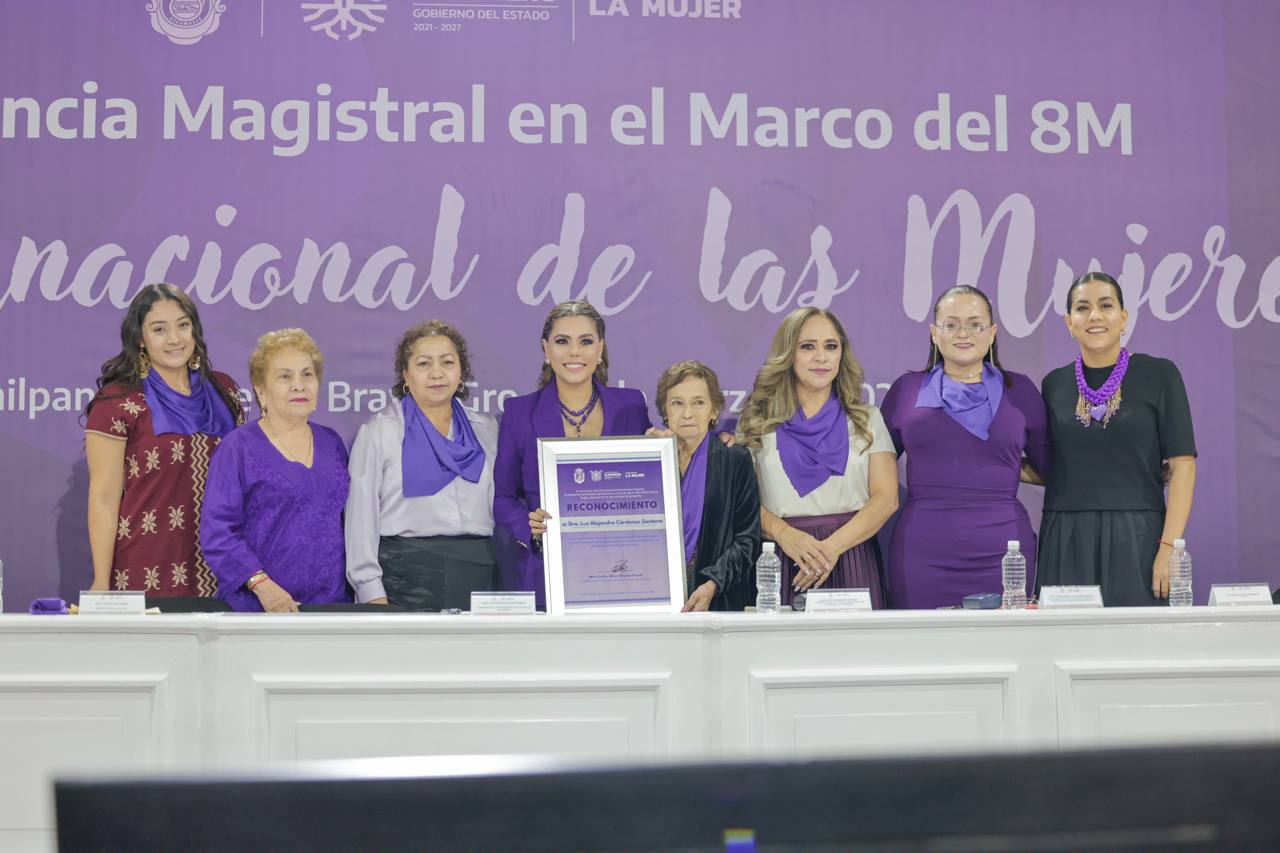 Desde el Teatro María Luisa Ocampo en Chilpancingo, la mandataria estatal hizo un llamado a seguir alzando la voz en defensa de los derechos de las mujeres y a honrar a quienes lucharon por la igualdad, para consolidar a Guerrero como un santuario seguro para todas.