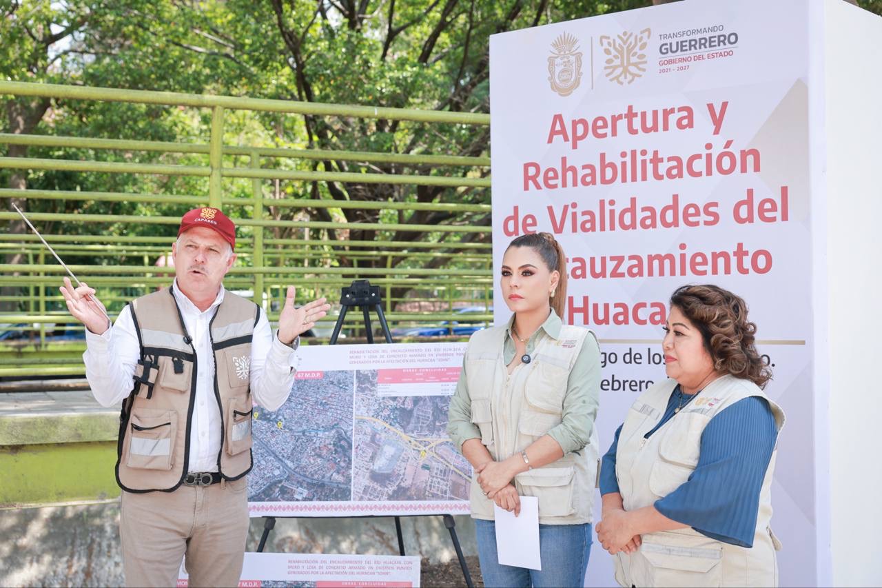 “Queremos que todas las vialidades de la capital estén en perfecto estado, con iluminación, banquetas y calles bien hechas. Seguimos avanzando en la rehabilitación del encauzamiento del Río Huacapa”, afirmó la gobernadora Evelyn Salgado Pineda al reafirmar su compromiso con el municipio de Chilpancingo.