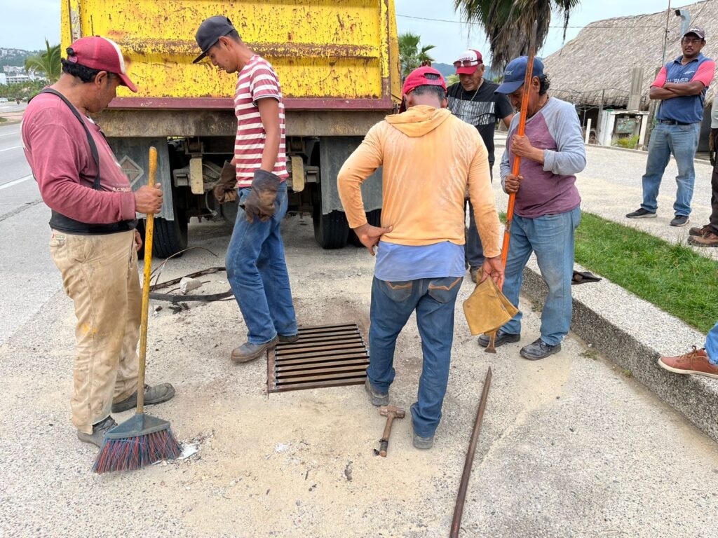Acapulco, Gro., 12 de julio de 2025.- Con la finalidad de proteger a la población de accidentes, el Gobierno Municipal que preside Abelina López Rodríguez coloca tapas y rejillas en registros abiertos en distintos puntos de Acapulco, principalmente en avenida Costera Miguel Alemán.