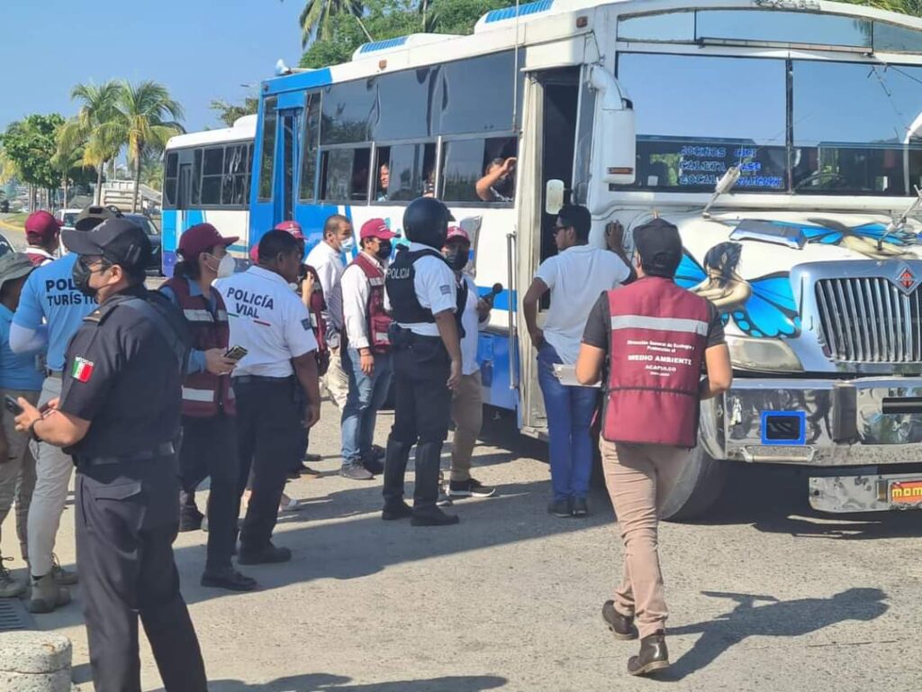 Acapulco, Gro., 07 de octubre de 2022.– Atendiendo las denuncias ciudadanas, personal de la Dirección de Ecología y Protección al Medio Ambiente, y elementos de la Policía Vial, iniciaron el exhorto a choferes del transporte público para el retiro de cornetas y aparatos de sonido que provocan contaminación auditiva.