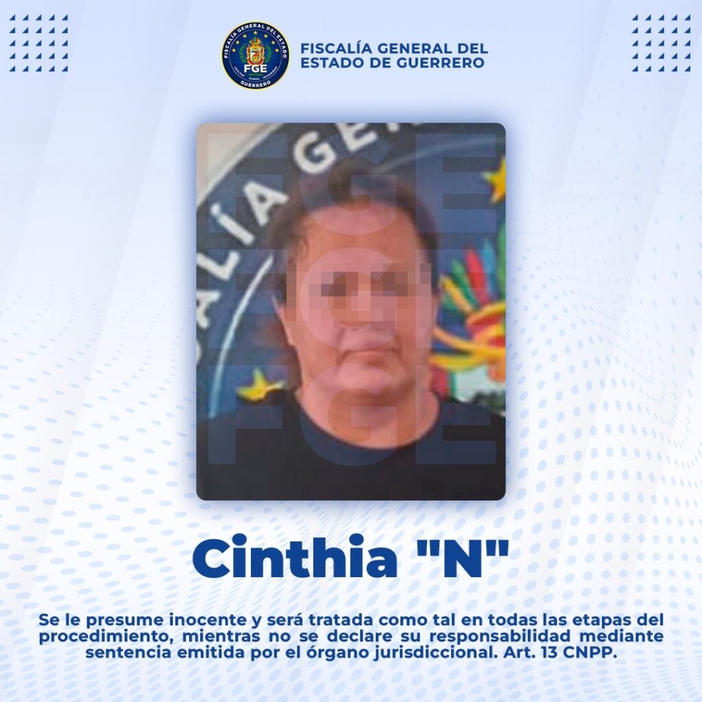 Chilpancingo,. Gro. a 1° de mayo de 2024.- La Fiscalía General del Estado de Guerrero (FGE) cumplimentó una orden de aprehensión en contra de Cinthia “N”, por su probable participación en el delito de fraude, cometido en perjuicio de Fernando “N”, por los hechos ocurridos en Tlapa de Comonfort.
