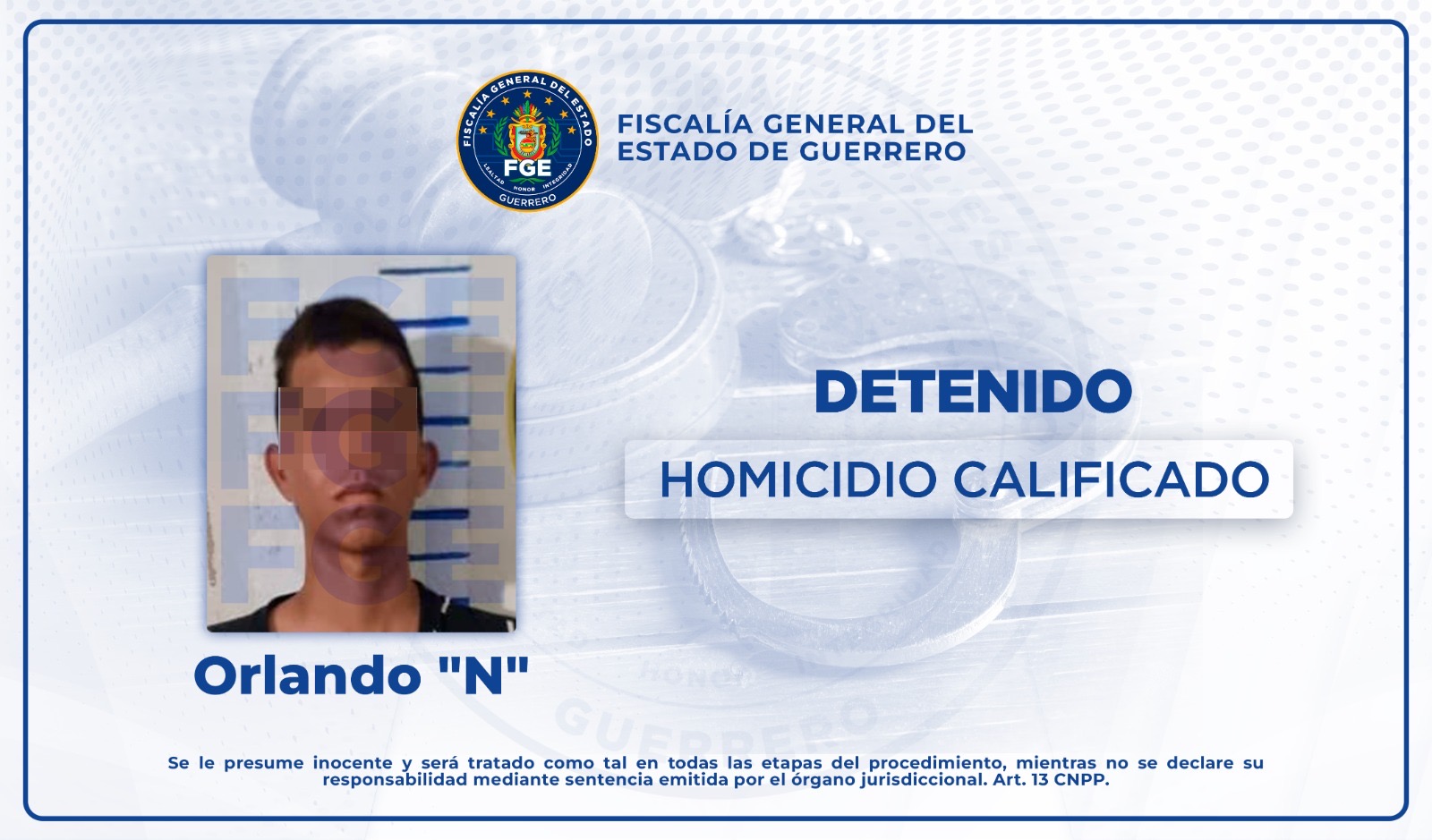 FGE Guerrero detiene a Orlando “N” por homicidio calificado en Acapulco