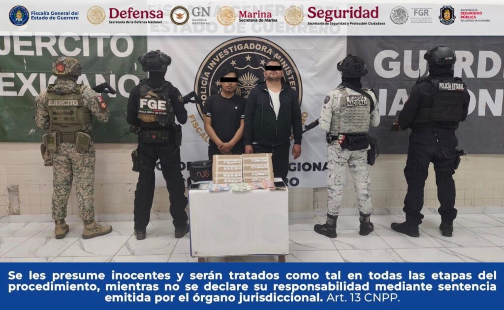 FGE Guerrero detiene en flagrancia a dos masculinos en Chilpancingo; aseguran presunto “cristal” y efectivo