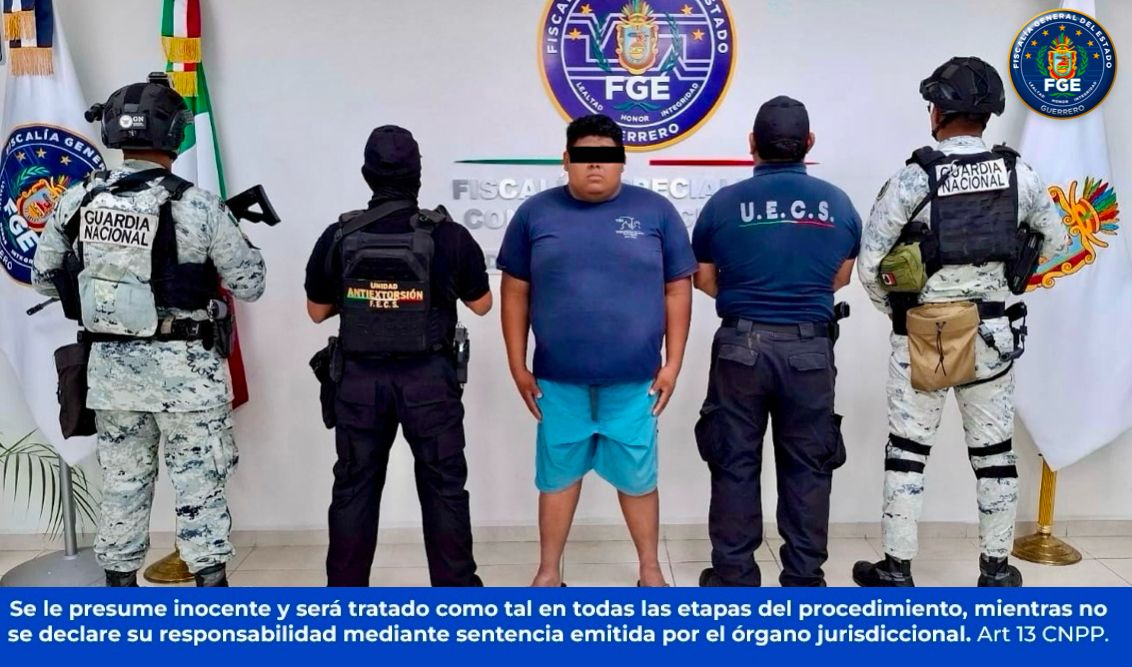 Chilpancingo, Gro., a 25 de abril de 2025.– La Fiscalía General del Estado de Guerrero (FGE Guerrero), en coordinación con la Secretaría de la Defensa Nacional (DEFENSA), la Guardia Nacional (GN), la Secretaría de Seguridad y Protección Ciudadana (SSyPC), y la Secretaría de Seguridad Pública del Estado de Guerrero (SSPGro), detuvo en flagrancia a Eduardo “N”, alias “El Chambitas”, por su probable responsabilidad en el delito contra la salud, en el municipio de Acapulco.