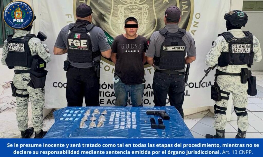 FGE Guerrero detiene en flagrancia a un hombre con arma de fuego y droga en San Marcos