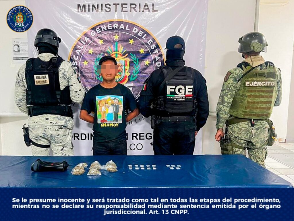 FGE Guerrero, Ejército Mexicano y GN detienen a Javier “N” por el delito contra la salud en Acapulco.