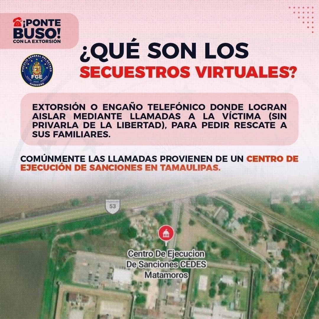 La FGE Guerrero exhorta a la población, para que no se dejen engañar ante este tipo de secuestro a distancia y acudan a denunciar a la Fiscalía Especializada contra el Secuestro, a fin de atender de manera oportuna y eficaz a las y los guerrerenses.