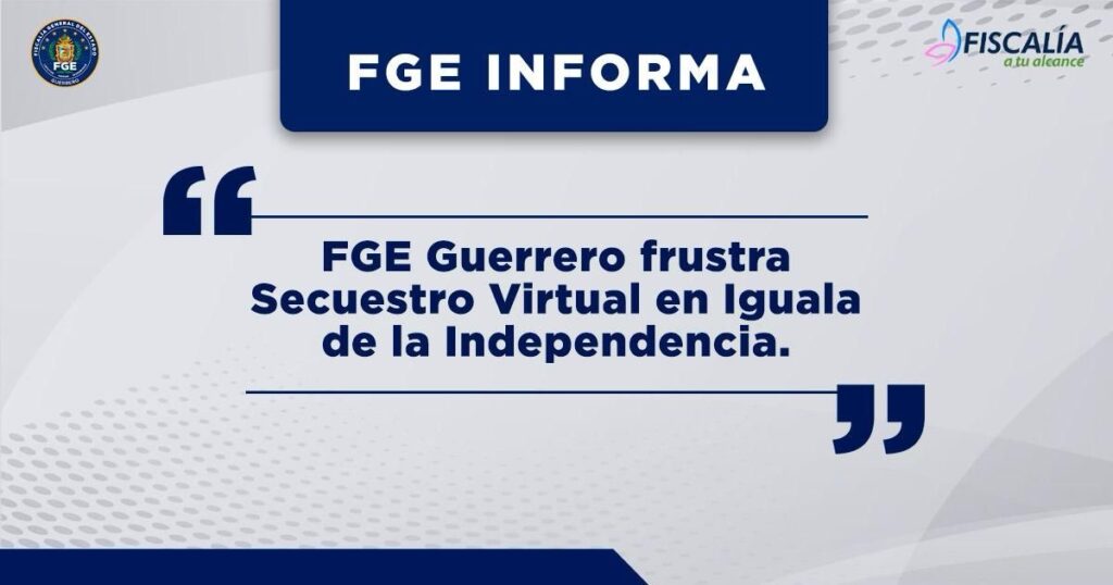 La FGE exhorta a la población, para que no se dejen engañar ante este tipo de secuestro a distancia y acudan a denunciar a la Fiscalía Especializada contra el Secuestro, a fin de atender de manera oportuna y eficaz a las y los guerrerenses.