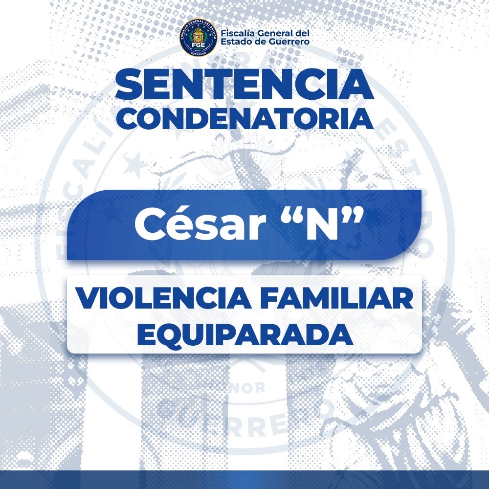Chilpancingo, Gro., a 27 de marzo de 2026.- La Fiscalía General del Estado de Guerrero logró que un juez dictara sentencia condenatoria de 8 meses de prisión en contra de César “N” por el delito de violencia familiar equiparada, cometido en perjuicio de una víctima de identidad reservada, en Iguala de la Independencia.