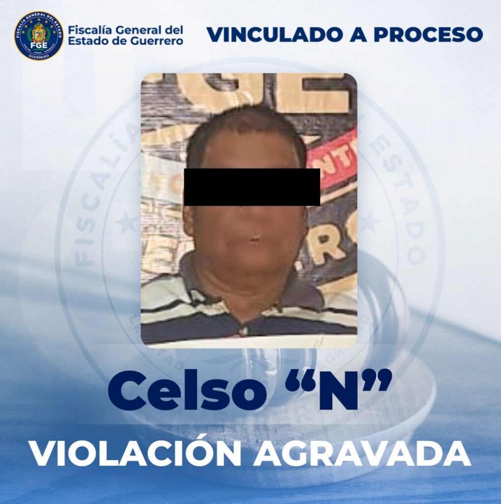 Chilpancingo, Gro., a 24 de octubre de 2025.- La Fiscalía General del Estado de Guerrero obtuvo la vinculación a proceso en contra de Celso “N”, por su probable participación en el delito de violación agravada, cometido en agravio de Rafaela “N”, por los hechos ocurridos en Iguala de la Independencia.