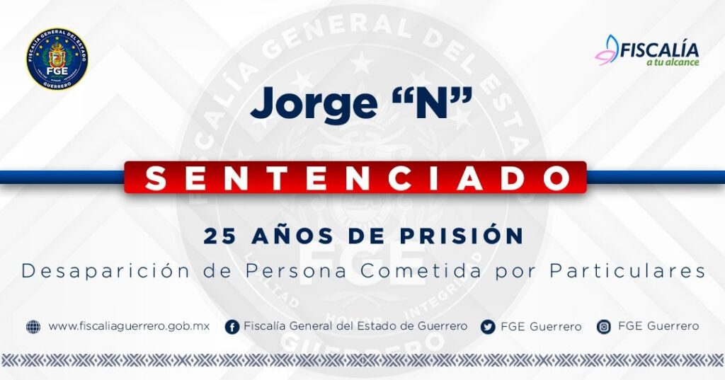 FGE Guerrero logró Sentencia Condenatoria por 25 años de prisión, Por Desaparición De Persona Cometida Por Particulares, en Acapulco de Juárez.