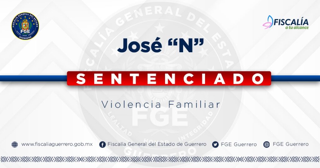 18 de enero de 2023. -La Fiscalía General del Estado logró sentencia condenatoria en contra de José “N” por el delito de Violencia Familiar, en perjuicio de una víctima de identidad reservada, por los hechos ocurridos el 20 de abril de 2022, en Zihuatanejo de Azueta.