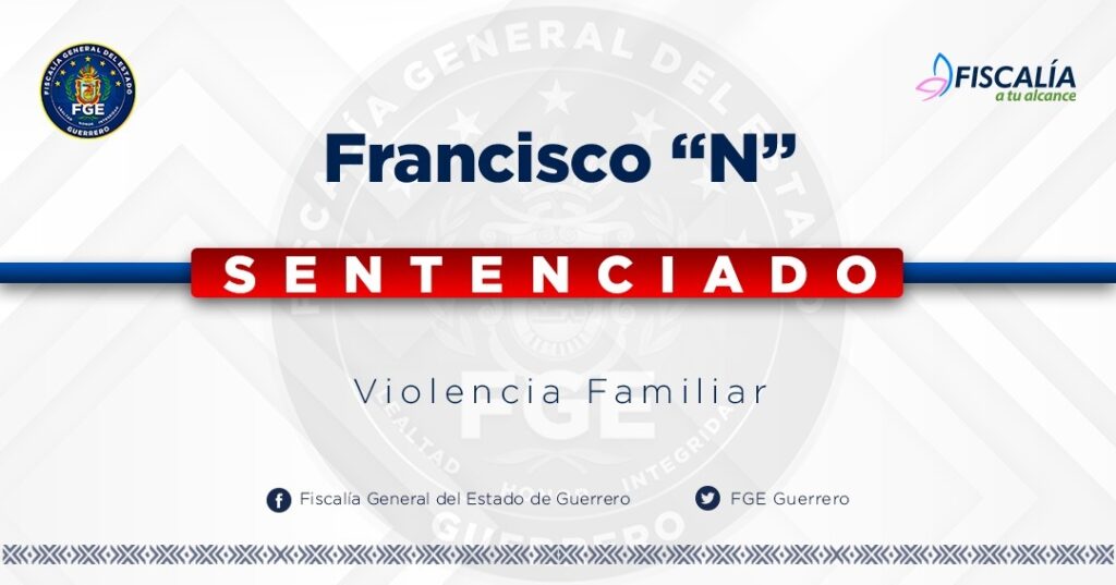 21 de diciembre de 2023. – La Fiscalía General del Estado logró Sentencia Condenatoria en contra de Francisco “N”, por el delito de Violencia Familiar, en perjuicio de una víctima cuya identidad se reserva, por los hechos ocurridos el 7 de abril de 2019, en Chilpancingo de los Bravo.